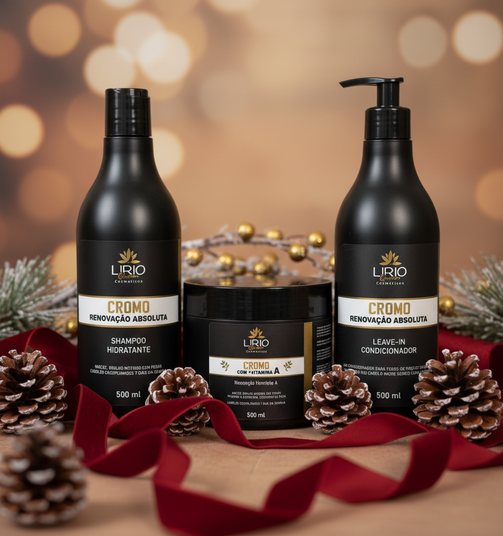 Kit Cromo Completo: Reconstrução e Brilho Intenso para Cabelos Danificados (Máscara, Shampoo e Leave-in 500ml)